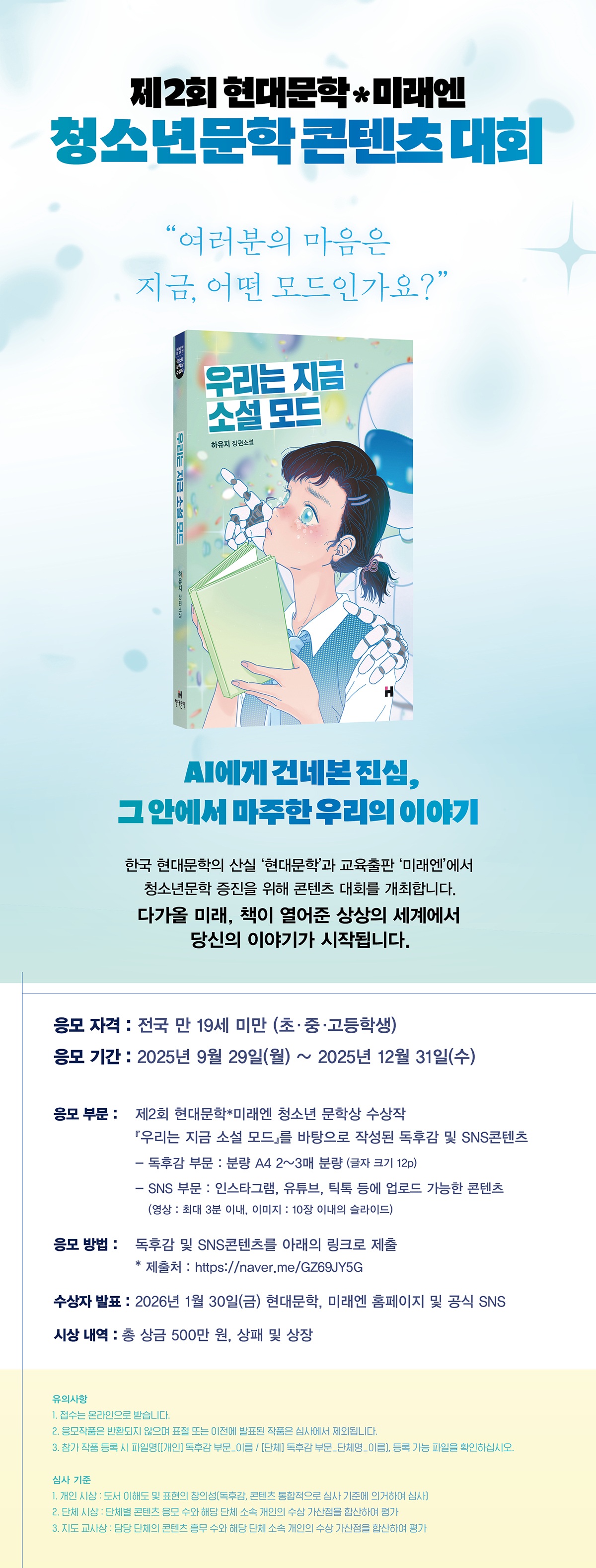 제2회 현대문학 X 미래엔 청소년문학 콘텐츠 대회 안내