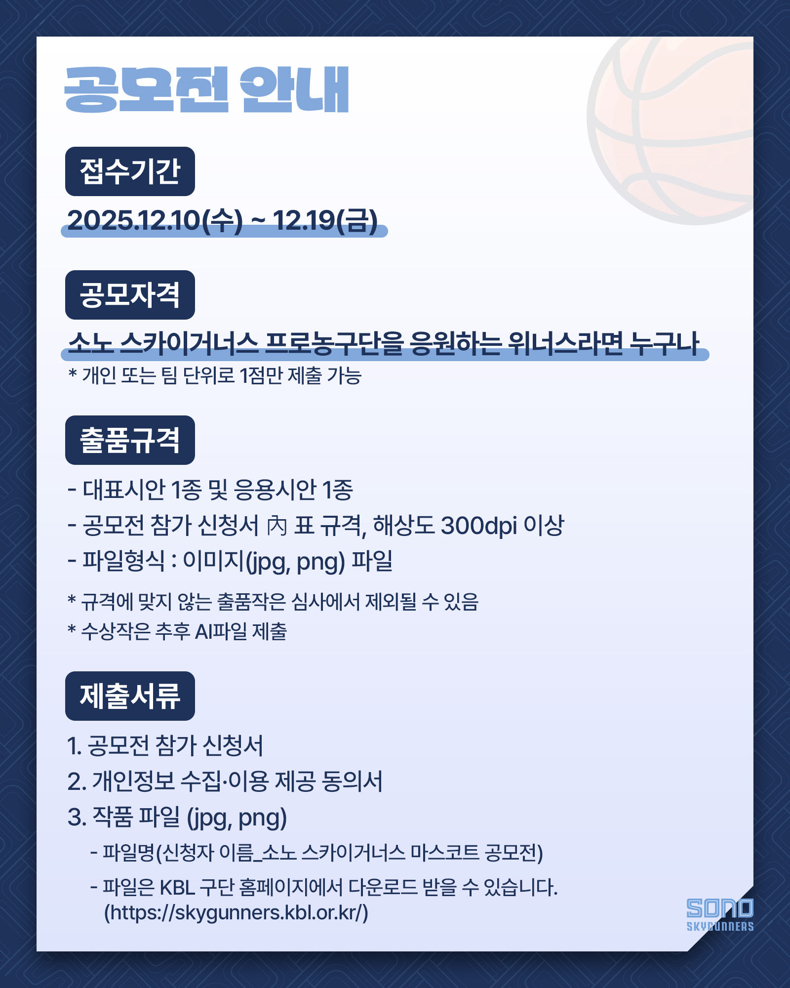 2025 고양 소노 스카이거너스 프로농구단 마스코트 공모전