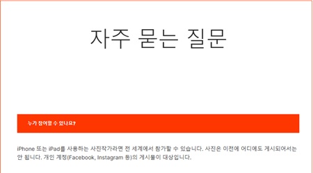 * 아이폰이나 아이패드로 촬영한 사진인지 확인하기 위해 원본 이미지를 요청할 수 있습니다. 확인이 불가능한 사진은 실격 처리됩니다.