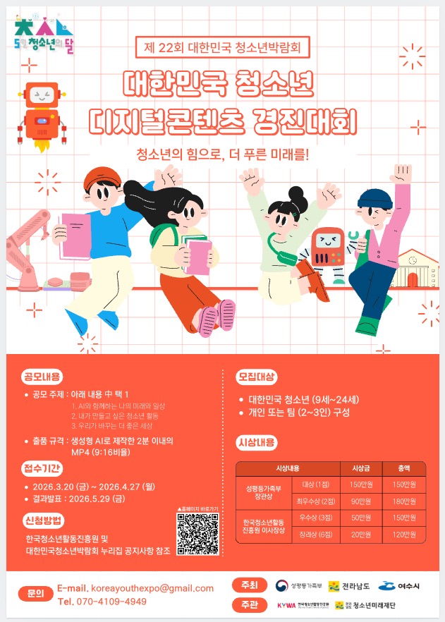제22회 대한민국청소년박람회 운영사무국 (전화: 070-4109-4949 / 이메일: koreayouthexpo@gmail.com)