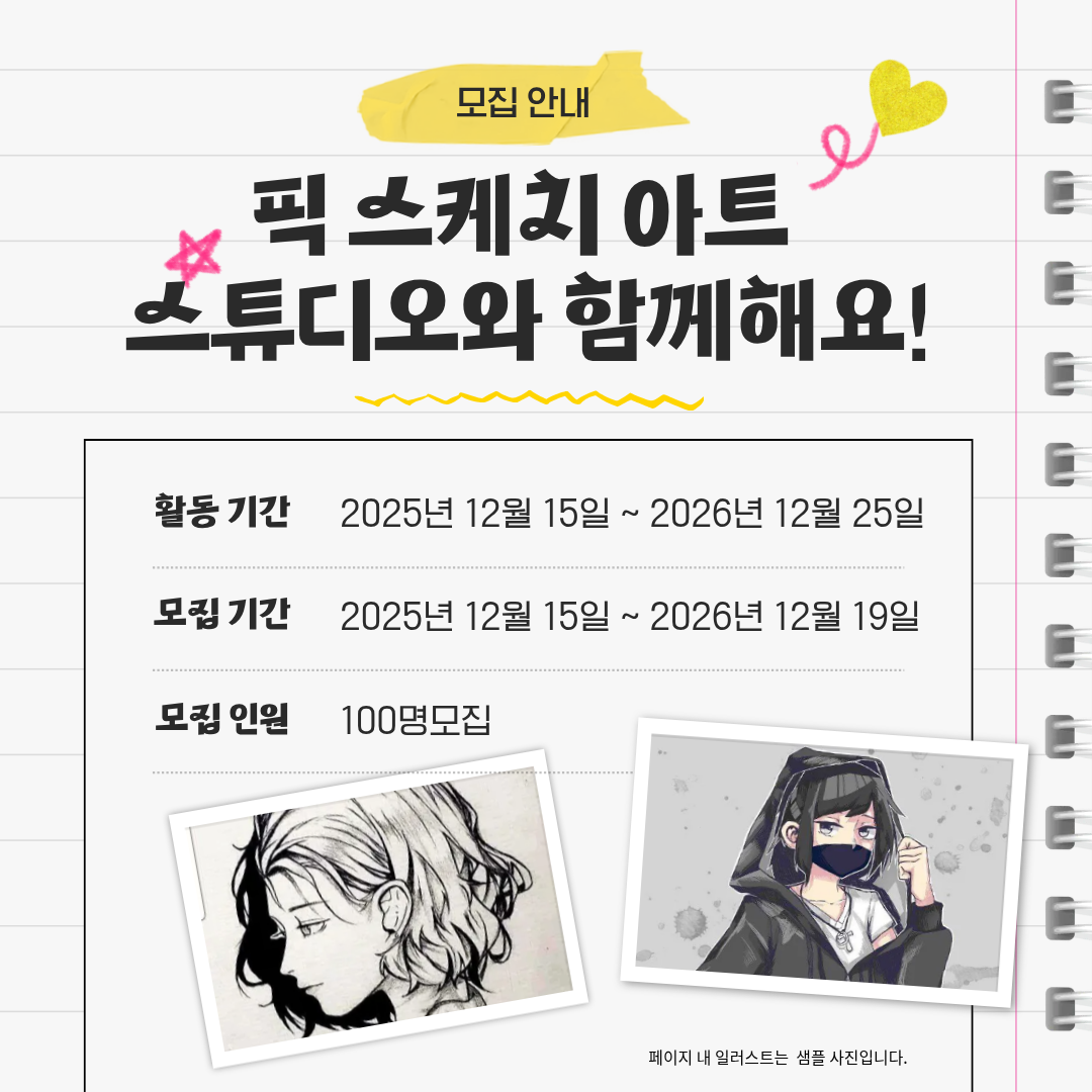 ![[픽 스케치 아트 스튜디오] 캐리커쳐 서포터즈](/admincenter/files/meet/202601241932492849490.png)