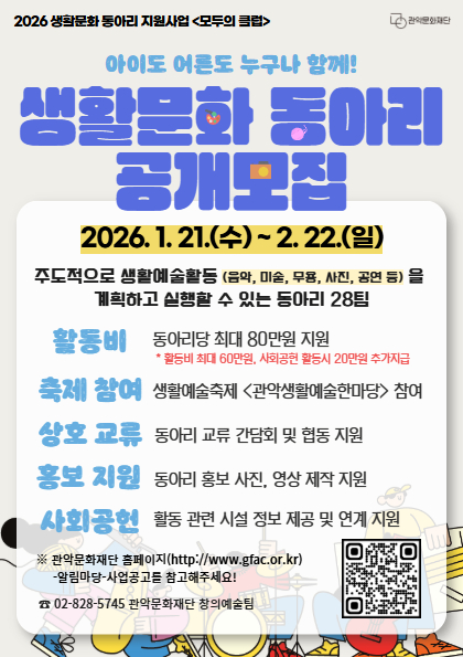 2026 생활문화동아리 지원사업 <모두의 클럽> 생활문화 동아리 공개모집
