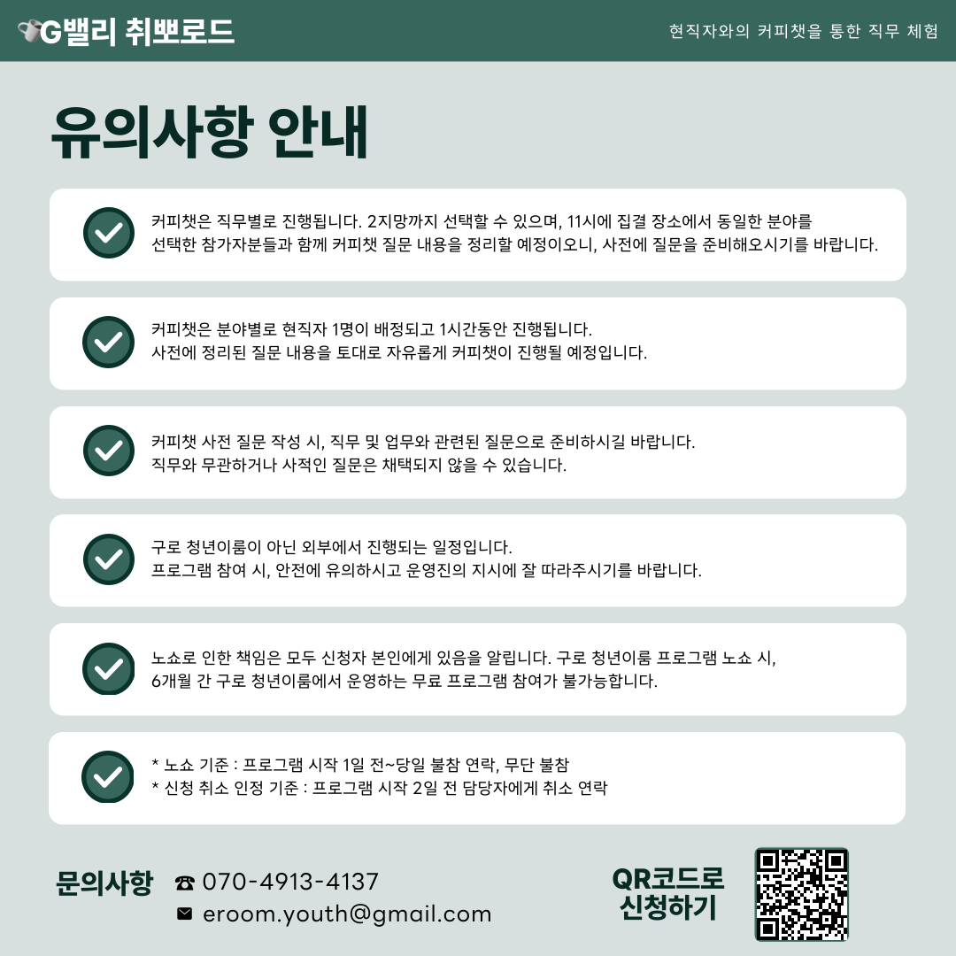 현직자와의 커피챗 제공, 간단한 중식 제공, 기업 탐방 참여 확인서 발급(구로 청년이룸 명의)