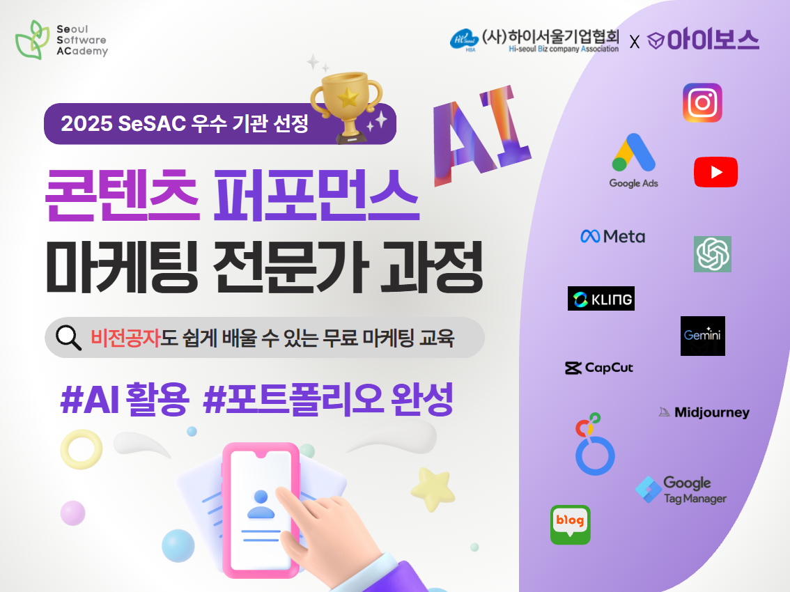 ![[서울시x서울경제진흥원] 새싹(SeSAC) 강서캠퍼스 | AI활용 콘텐츠 퍼포먼스 마케팅 전문가 과정 4기](/admincenter/files/meet/202511031948027896309.jpg)