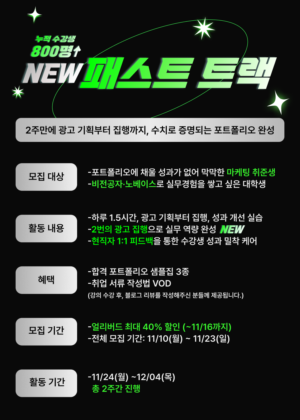 누적 수강생 800명 달성재요청 기념, 패스트트랙 12기가 리뉴얼되어 돌아왔습니다!