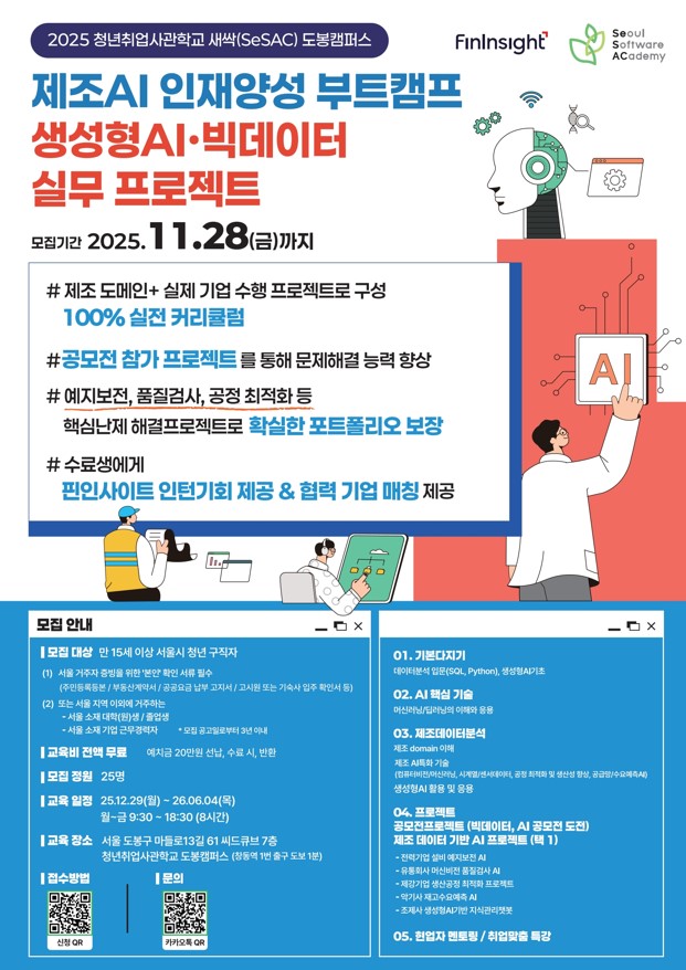 ![[새싹(SeSAC) 도봉캠퍼스 1기] 제조AI 인재양성 부트캠프_생성형AI&빅데이터 실무 교육생 모집](/admincenter/files/meet/202511061704014884320.jpg)