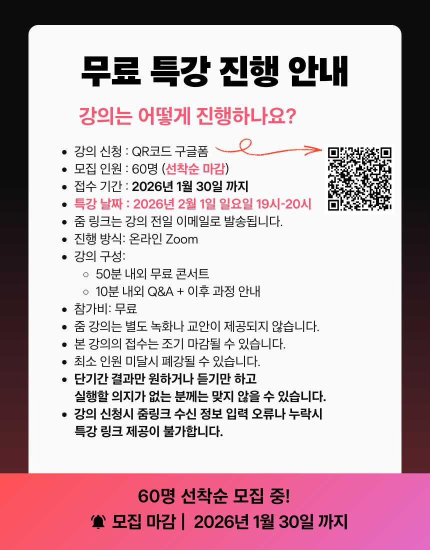 취업 준비를 어디서부터 해야 할지 막막하다면 지원서·면접·경험 정리까지 한 번에 정리하는 로드맵을 먼저 잡는 게 중요합니다. 이 무료특강에서는 요즘 채용에서 실제로 보는 포인트를 기준으로 ‘지금 뭘 해야 하는지’를 명확하게 정리해드립니다.