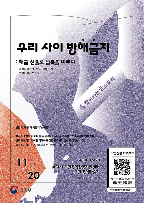 ![[통일부] 찾아가는 북스토리 토크콘서트 in 순천 ― 우리 사이 방'해금'지](/admincenter/files/meet/202511161144373012243.png)