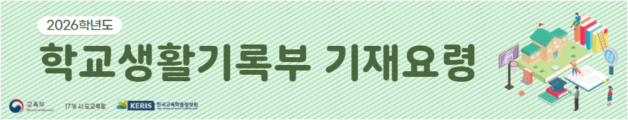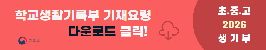 아래 다운로드 이미지를 클릭하셔서 PDF 파일을 다운 받으시기 바랍니다. [첨부 파일] 2. 2026-2021학년도 학교생활기록부 기재요령(중학교).pdf 3. 2026-2021학년도 학교생활기록부 기재요령(고등학교).pdf