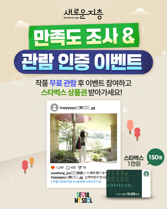 ![]() ![]() 2025 노을공원 아트파빌리온 프로젝트 <새로운 지층> 만족도조사&관람 인증 이벤트