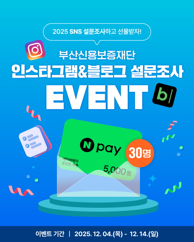 부산신용보증재단과 함께하는 설문조사 참여하고 네이버페이 5천원권 받자!