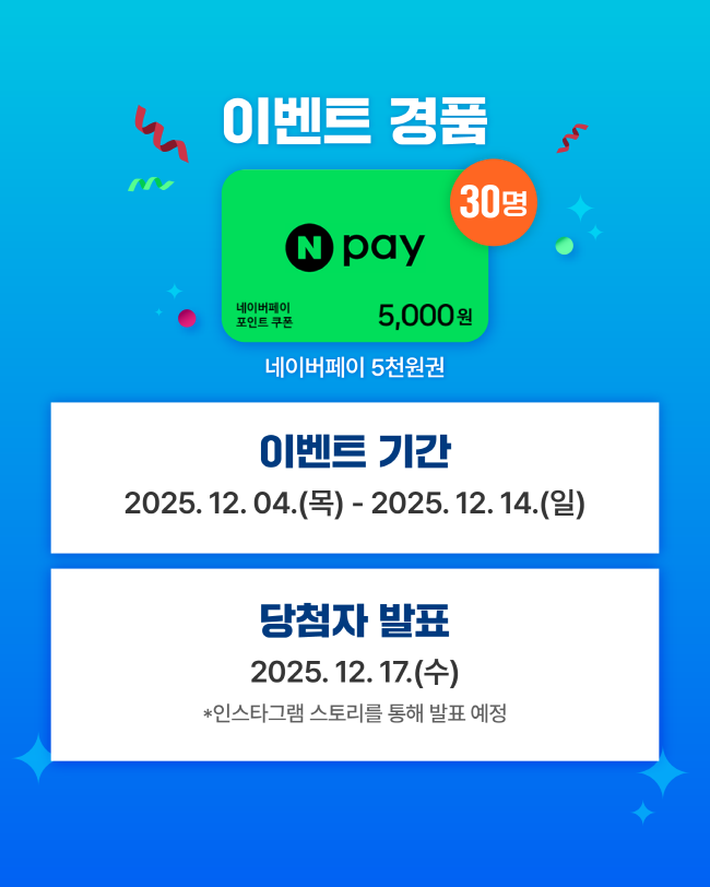 당첨자 발표 2025. 12. 17.(수) 인스타그램 스토리 통해 발표 예정!