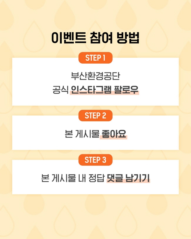 이벤트 참여 방법 ① 부산환경공단 공식 인스타그램 팔로우 ② 이벤트 게시물 좋아요 ③ 정답 댓글 남기기