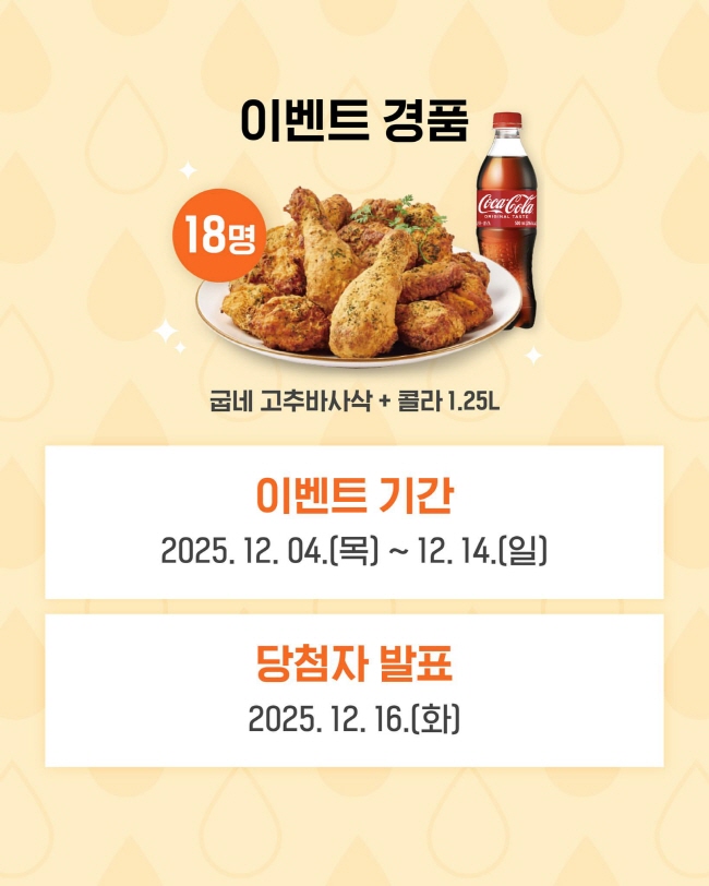 이벤트 경품 굽네 고추바사삭+콜라 1.25L(18명)
