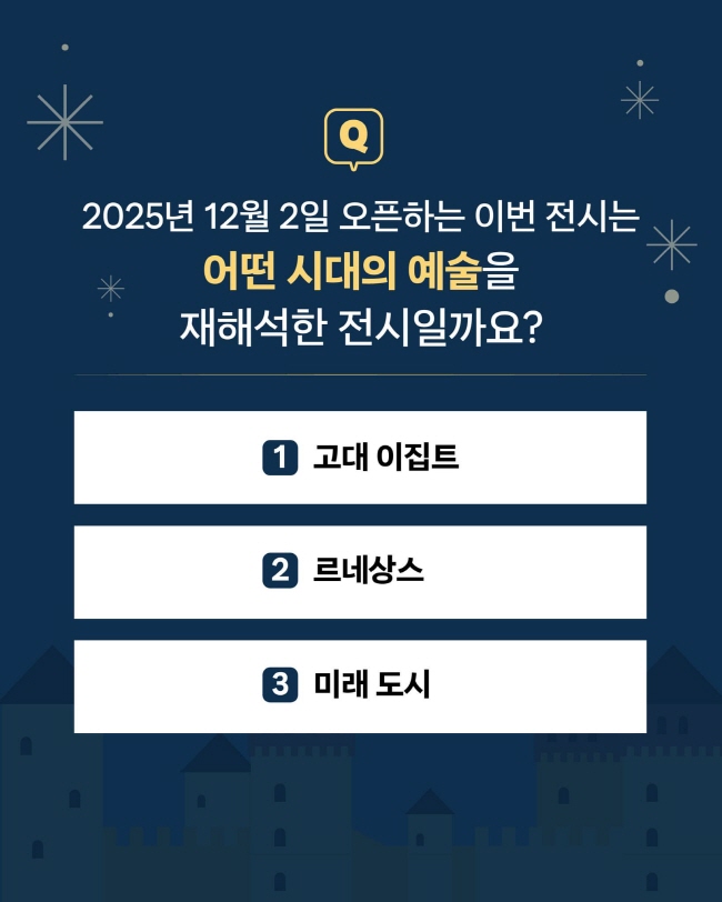전시 퀴즈 EVENT Q. 2025년 12월 2일 오픈하는 이번 전시는 어느 시대의 예술을 재해석한 전시일까요?