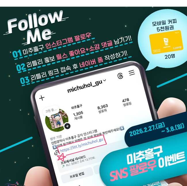 미추홀구 '리틀리' 링크 오픈 기념 SNS 팔로우 이벤트