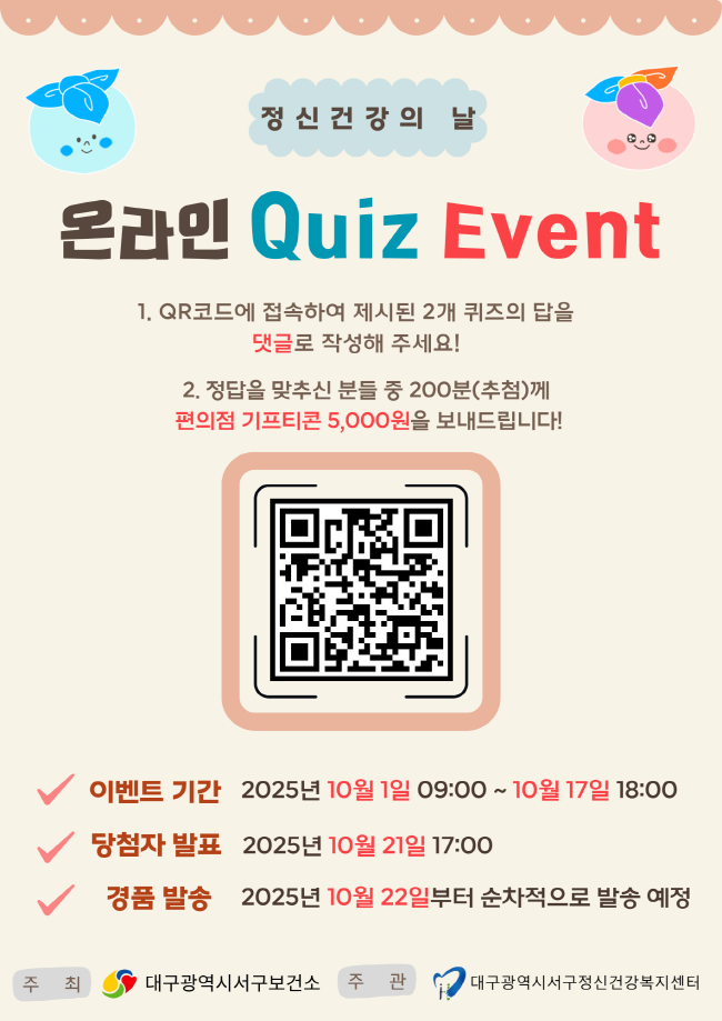 정신건강의 날을 맞이하여 온라인 퀴즈 이벤트를 진행합니다.