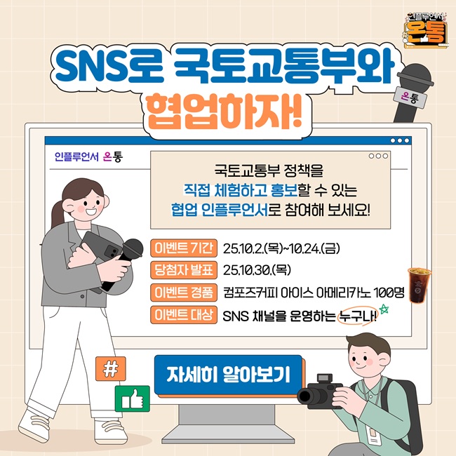 국토교통부와 한 걸음 더 가까워지는 협업 인플루언서, 함께 해요!