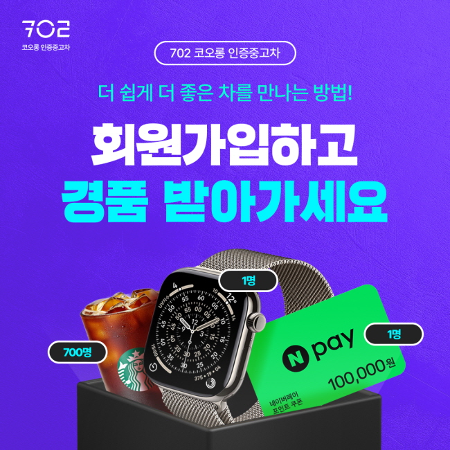[코오롱모빌리티그룹] Welcom 702 코오롱 인증중고차 회원가입만 하면 자동 응모