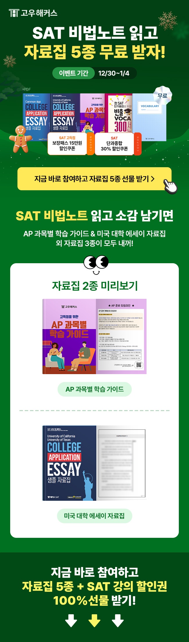 SAT 시험&미국 대입 준비에 꼭 필요한 핵심 자료 + 할인 혜택을 한 번에 받아가세요! https://gouk.kr/8EqSZx