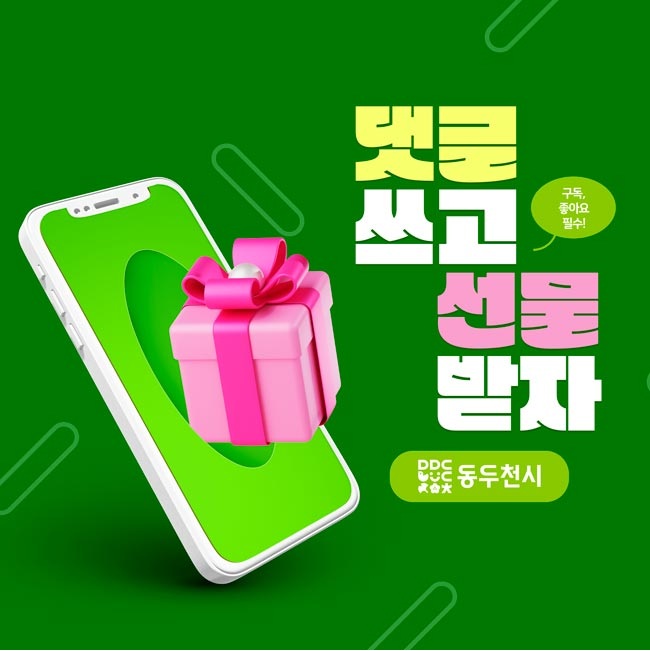 참여 방법 1.동두천시 공식 유튜브 구독 (유튜브 등) 2.유민상 '평화경제특구 유치 염원' 홍보 영상 시청하기 3.응원 댓글 남기기! (필수 문구: "평화경제특구는 동두천으로!") 4. 아래 링크 클릭해서 인증하면 완료! 5.큐알코드로 인증 (인스타그램, 페이스북, 블로그에서 가능) 참여 인증 폼: https://naver.me/x8kfW4n9