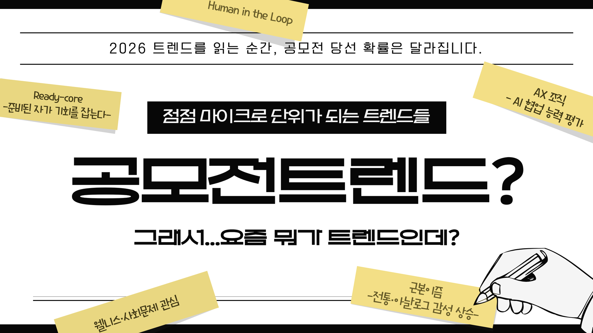 2026 트렌드를 읽는 순간, 공모전 당선 확률은 달라집니다.
