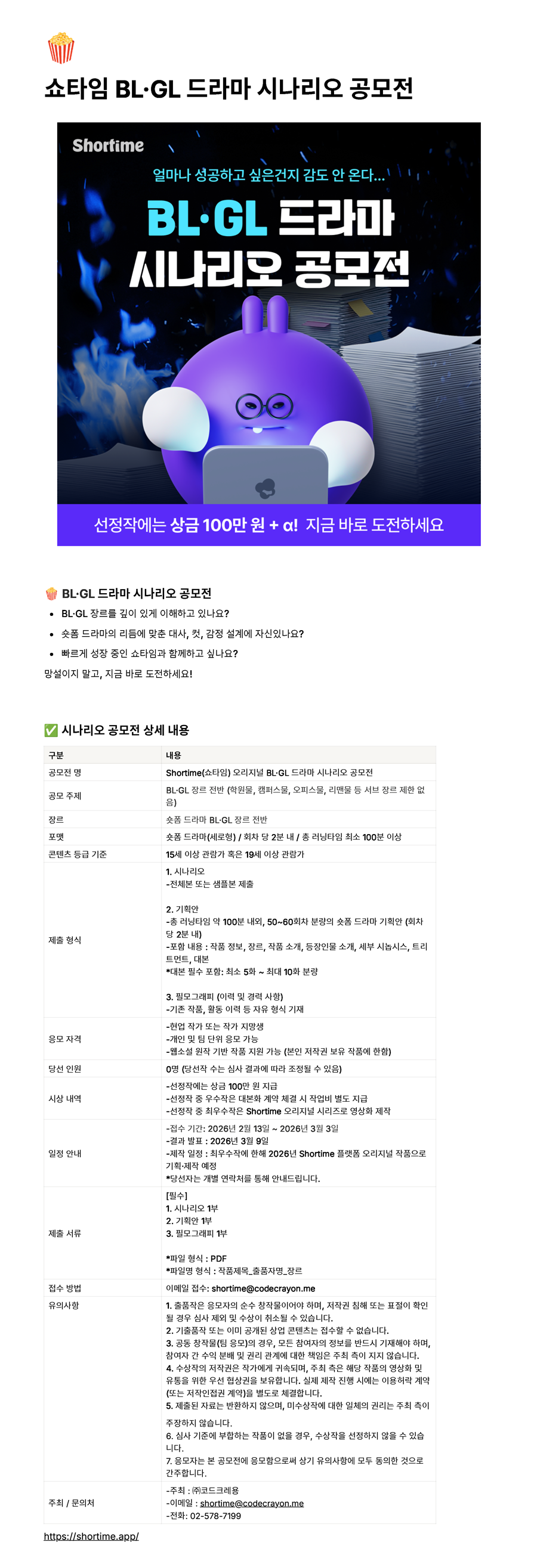 이메일 접수: shortime@codecrayon.me
