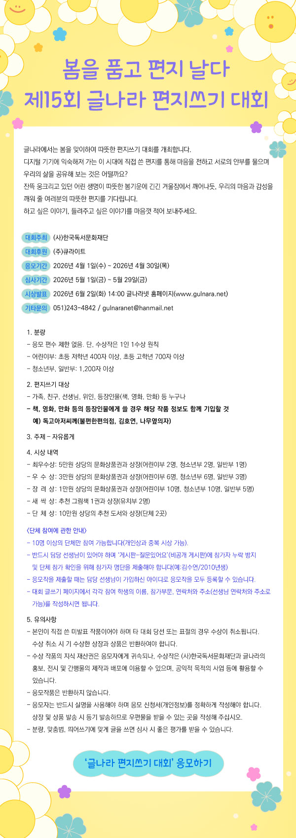 제15회 글나라 편지쓰기대회_봄을 품고 편지날다