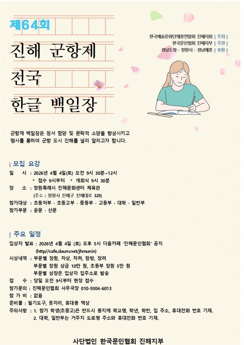 2026년 4월 4일 (토) 오후 5시 다음카페 '진해문인협회' 공지