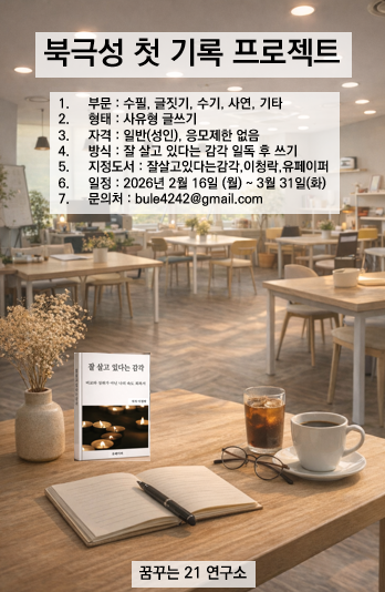 지정 도서를 읽고 떠오른 생각, 감정, 경험을 자유형식으로 기록하여 제출하는 사유형 글쓰기 공모 (지정도서 : 잘살고 있다는 감각/이청락/유페이퍼)