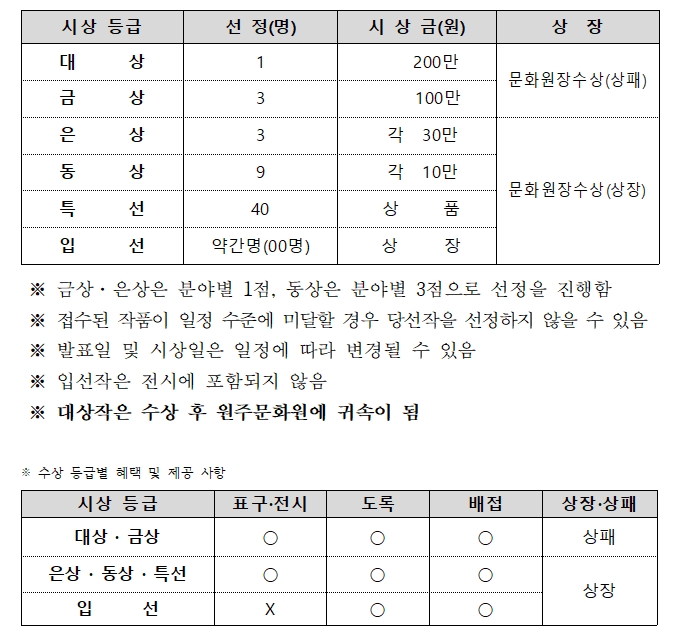 ※ 대상작은 수상 후 원주문화원에 귀속이 됨