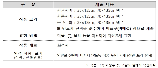 공모내용 : 한글서예, 한문서예, 문인화 (자유 주제)