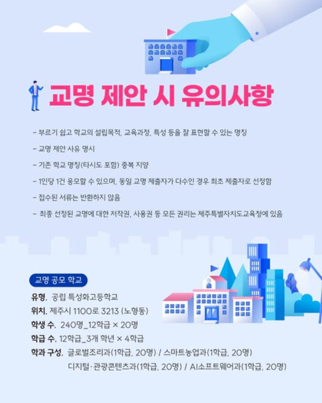 2027년 개교 예정인 (가칭)제주미래산업고등학교의 교명을 공모합니다.