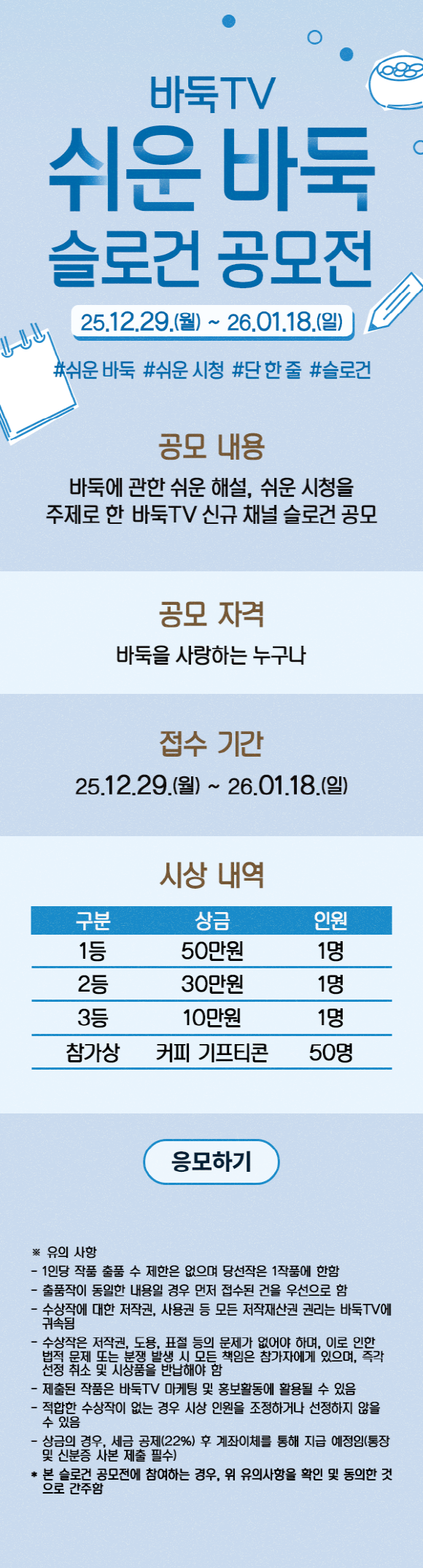 26년 2월 중 / 바둑TV 홈페이지 공지 및 개별 연락