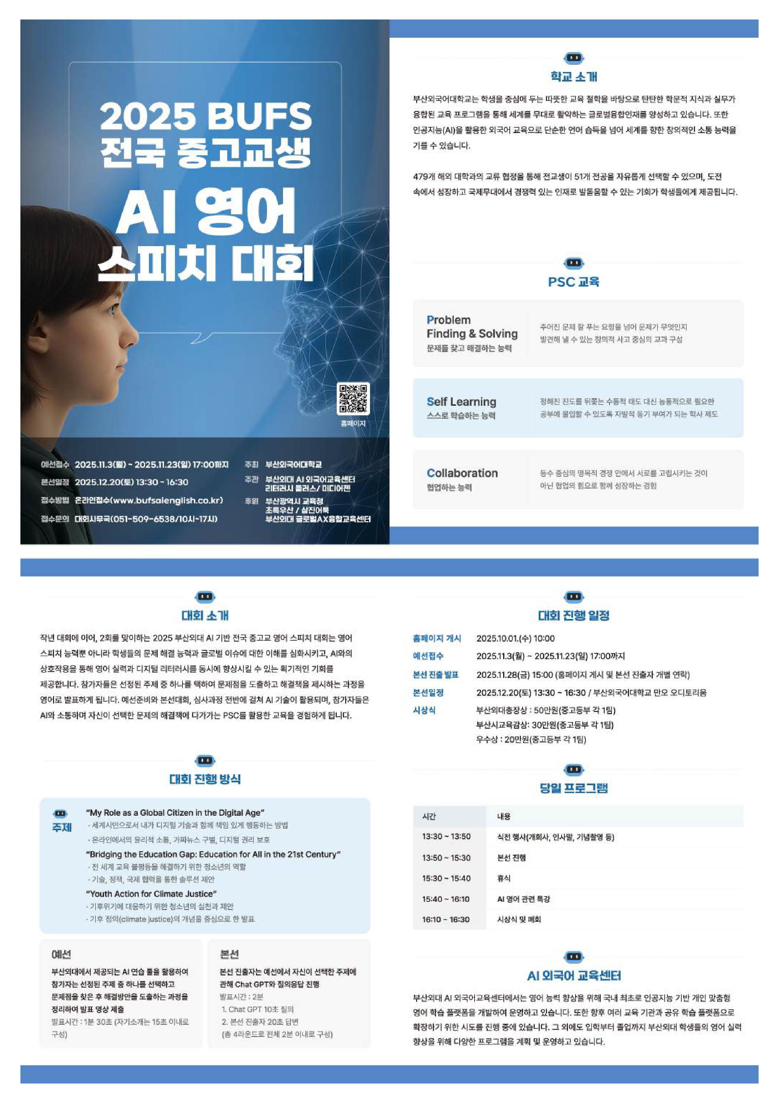 [부산외국어대학교 주최] 2025 BUFS 전국 중고교생 AI 영어 스피치 대회