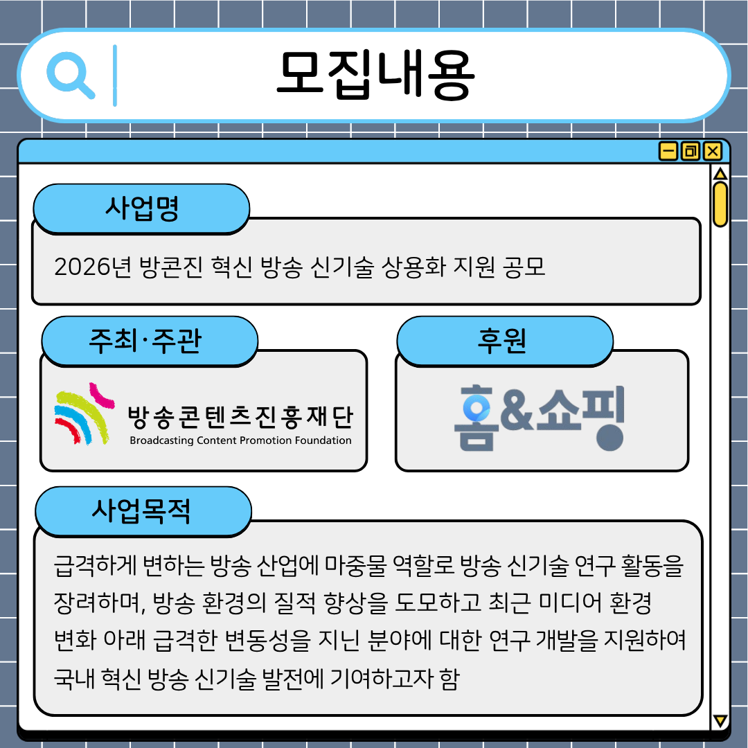 2026 방콘진 혁신 방송 신기술 상용화 지원 공모 사업