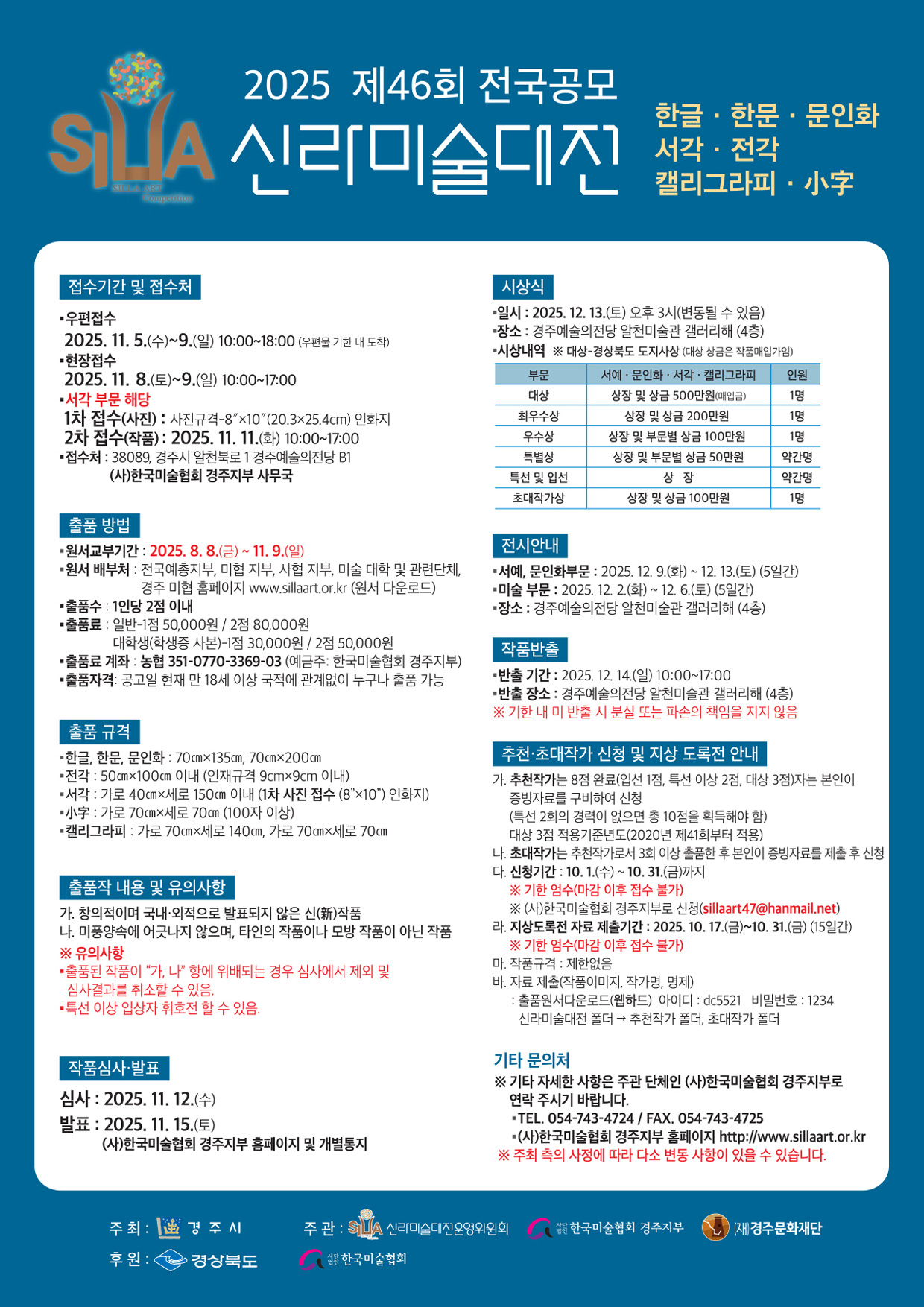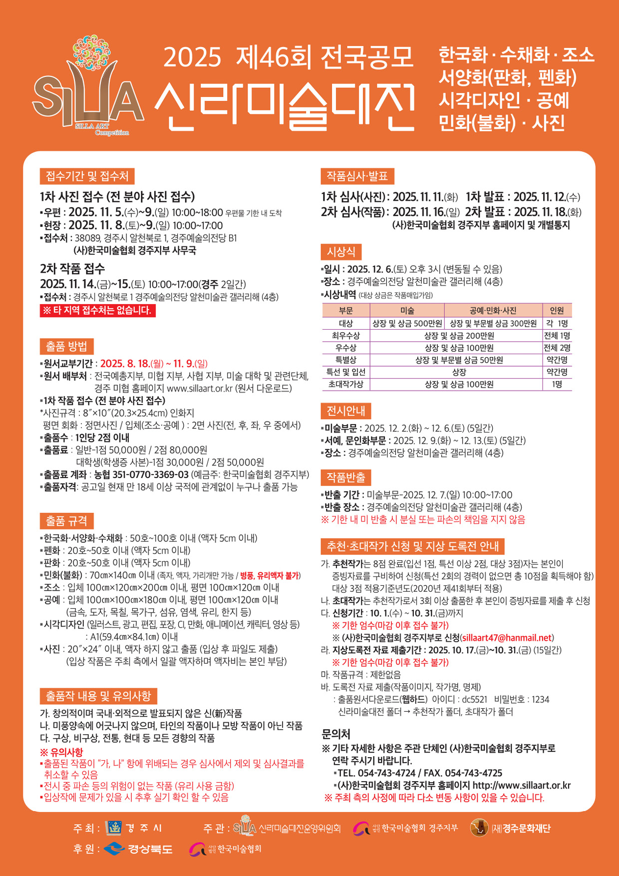| 주최 . 주관 | 경주시/신라미술대전운영위원회, 한국미술협회 경주지부, 경주문화재단 |