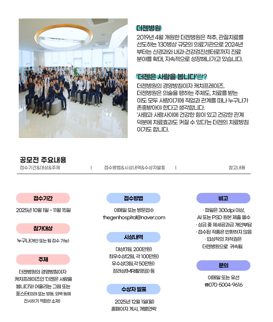 수상작은 2025. 12.1 더젠병원 홈페이지와 개별연락을 통해 발표합니다.
