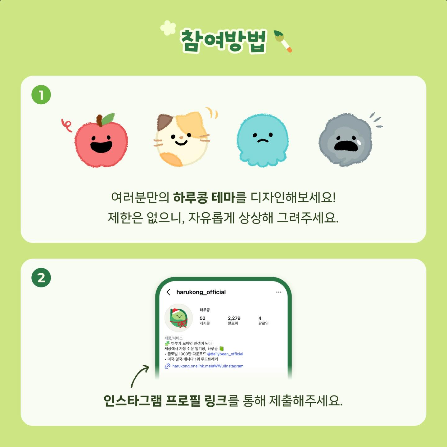 제 5회 하루콩 디자인 컨테스트에 참여해주세요 하루콩을 쓰면서 ‘아 이런 테마 있으면 좋을텐데…’ 했던 적이 있다면 지금이 기회! 제5회 하루콩 디자인 콘테스트에 참여해 내 아이디어도 뽐내고, 상품도 받아가세요