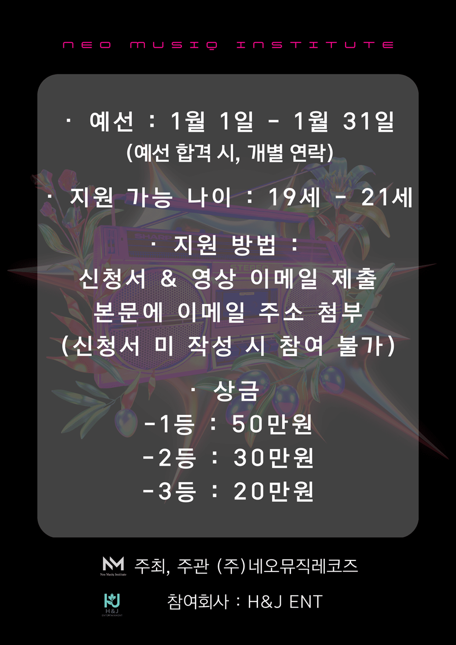 총 상금 100만원! 19-21세라면 누구나 네오뮤직실용음악학원 보컬 커버 콘테스트 개최!