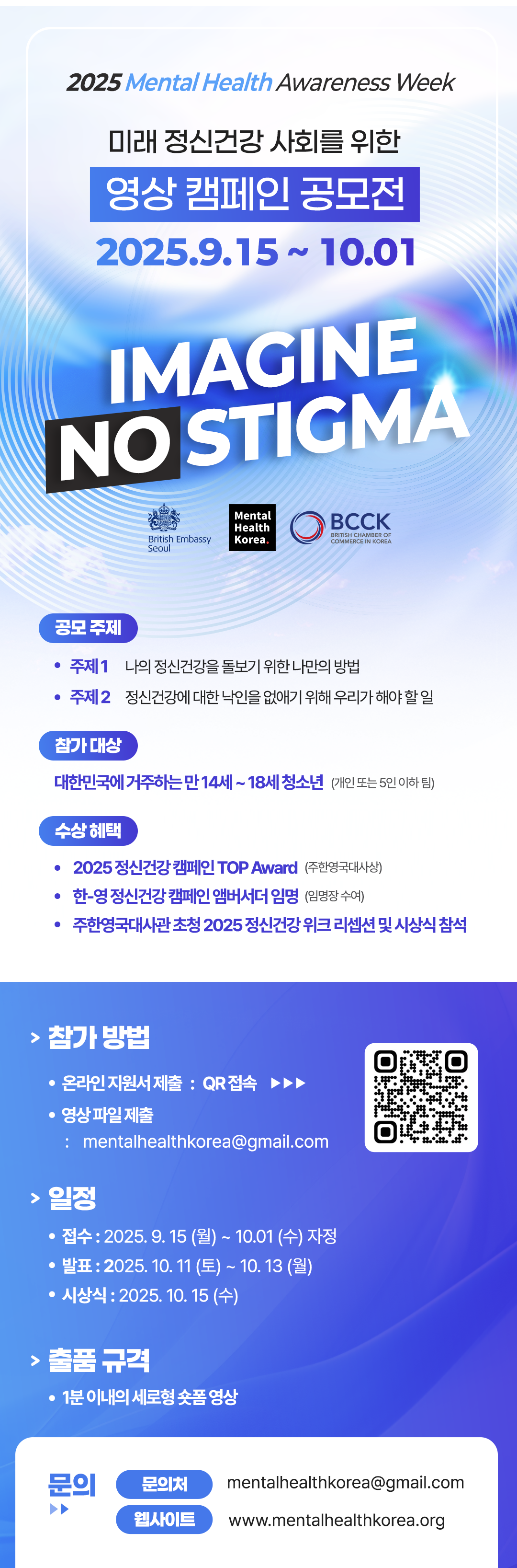- 상격: 2025 정신건강 캠페인 TOP Award (주한영국대사상, 10개 내외팀 선발 예정)