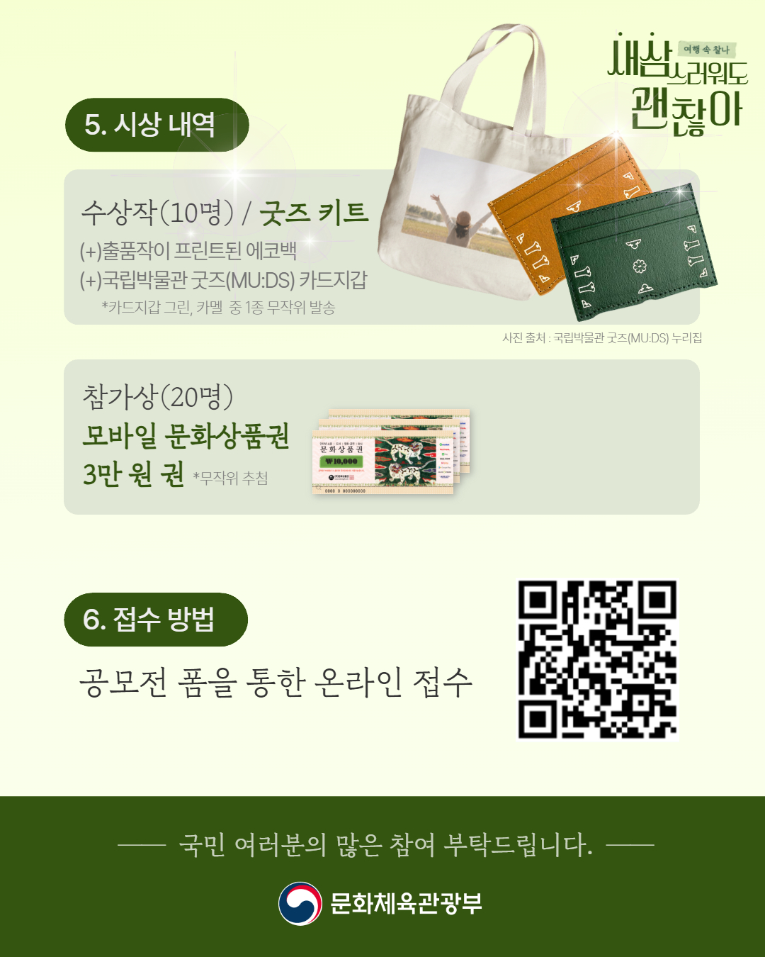 | 시상내역 | 기타 :입상 10명 : 굿즈 키트(응모 사진 인화된 에코백 + 국립박물관 굿즈 카드지갑) |