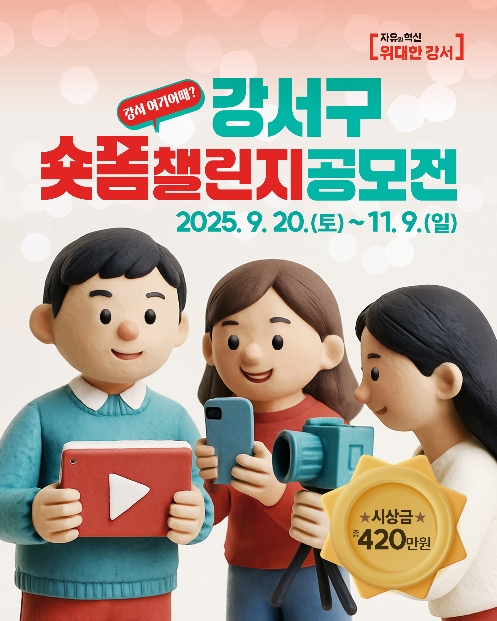 강서구의 다양한 매력과 가치를 스스로 발견하고, 역사, 문화, 명소, 정책 등 강서구만의 이야기를 창의적으로 담은 짧은 영상을 함께 공유하기 위해 「강서구 숏폼 챌린지 공모전」을 개최합니다