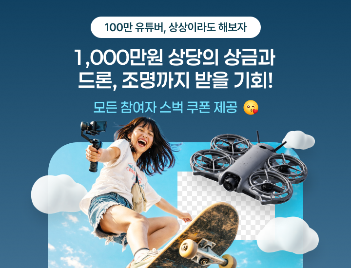 N년째 유튜버를 꿈꿨지만 아무도 안 봐주고, 영상은 찍어놓고 폴더에만 있는 편집기는 눌러만 봤고, 장비는 괜히 멋있어 보이는 당신을 위한 공모전. 이번 공모전이 첫 걸음이 될 수 있습니다!