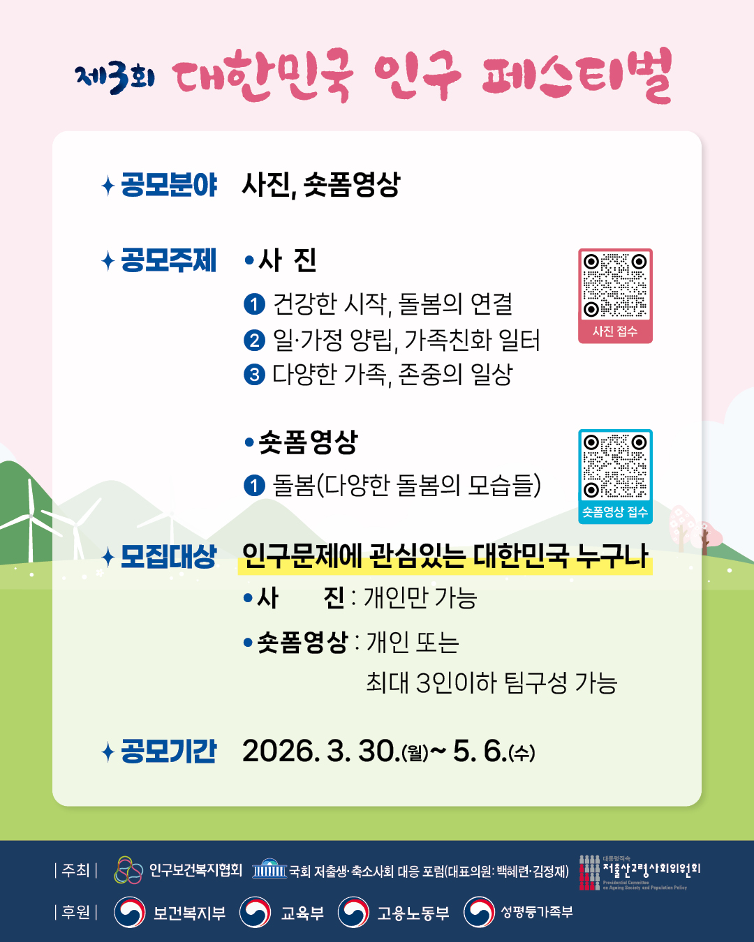 제3회 대한민국 인구 페스티벌(2026) 사진,숏폼영상 공모전