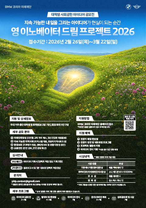 ![[BMW 코리아 미래재단] 영 이노베이터 드림 프로젝트 2026 - 대학생 사회공헌 아이디어 공모전](/admincenter/files/meet/202602261044019046366.png)