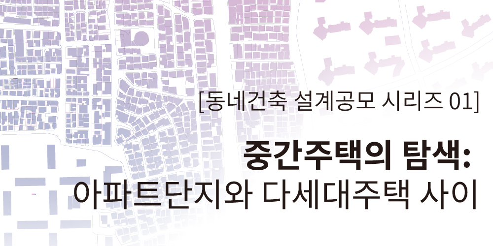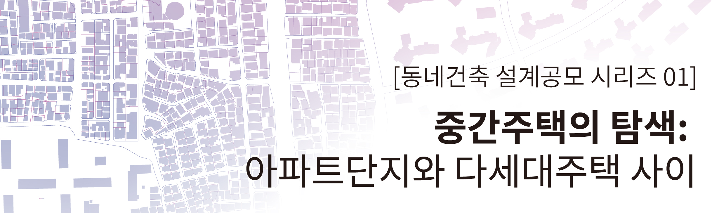+ 저층주거지에 적용되고 있는 현행 법령과 제도에 얽매이지 않고, 대지와 건축물 규모, 세대와 가구, 공간구성, 가로와의 관계 등을 포괄하는 새로운 중간주택 유형과 이를 가능하게 하기 위해 필요한 법제도의 변경 방안이 제시되기를 기대합니다. 아울러 분양과 임대로 양극화된 기존 개발 방식과 주체, 운영구조 전환에 대한 제안 역시 기대합니다.