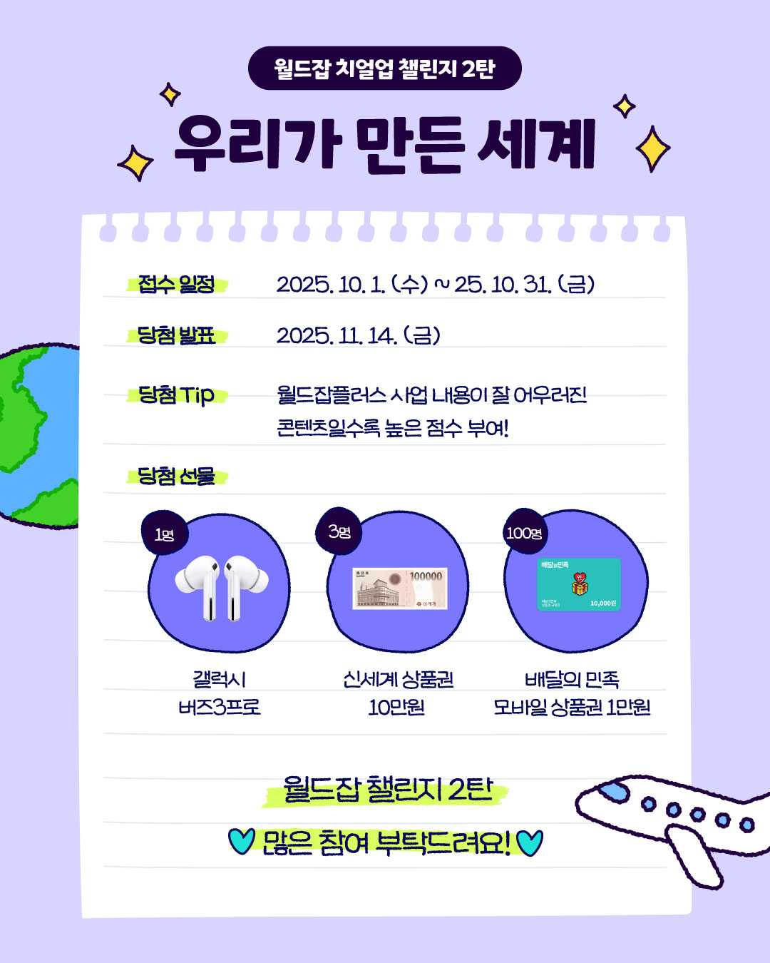 ※ 참여한 콘텐츠는 추후 '월드잡플러스' SNS 채널에 게시 및 활용될 수 있으며, 이후 별도 저작권료는 지급되지 않습니다.