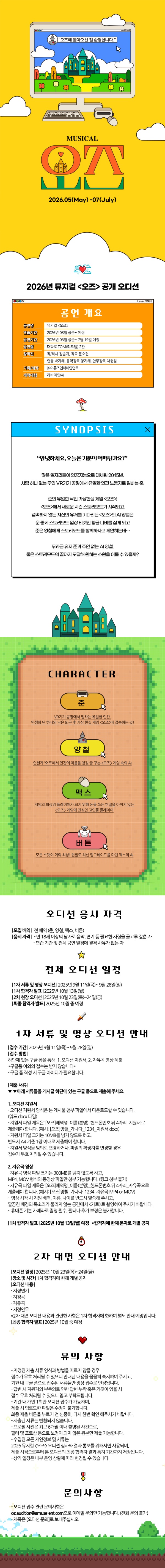 *2차 대면 오디션 내용과 관련한 사항은 1차 합격자에 한하여 별도 안내 예정입니다.