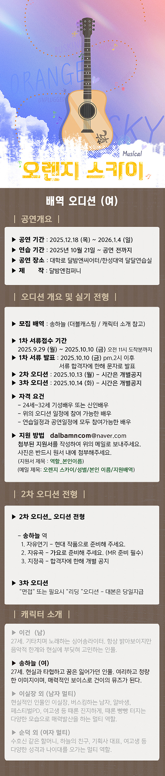 뮤지컬 <오렌지 스카이> 여자 배역 모집